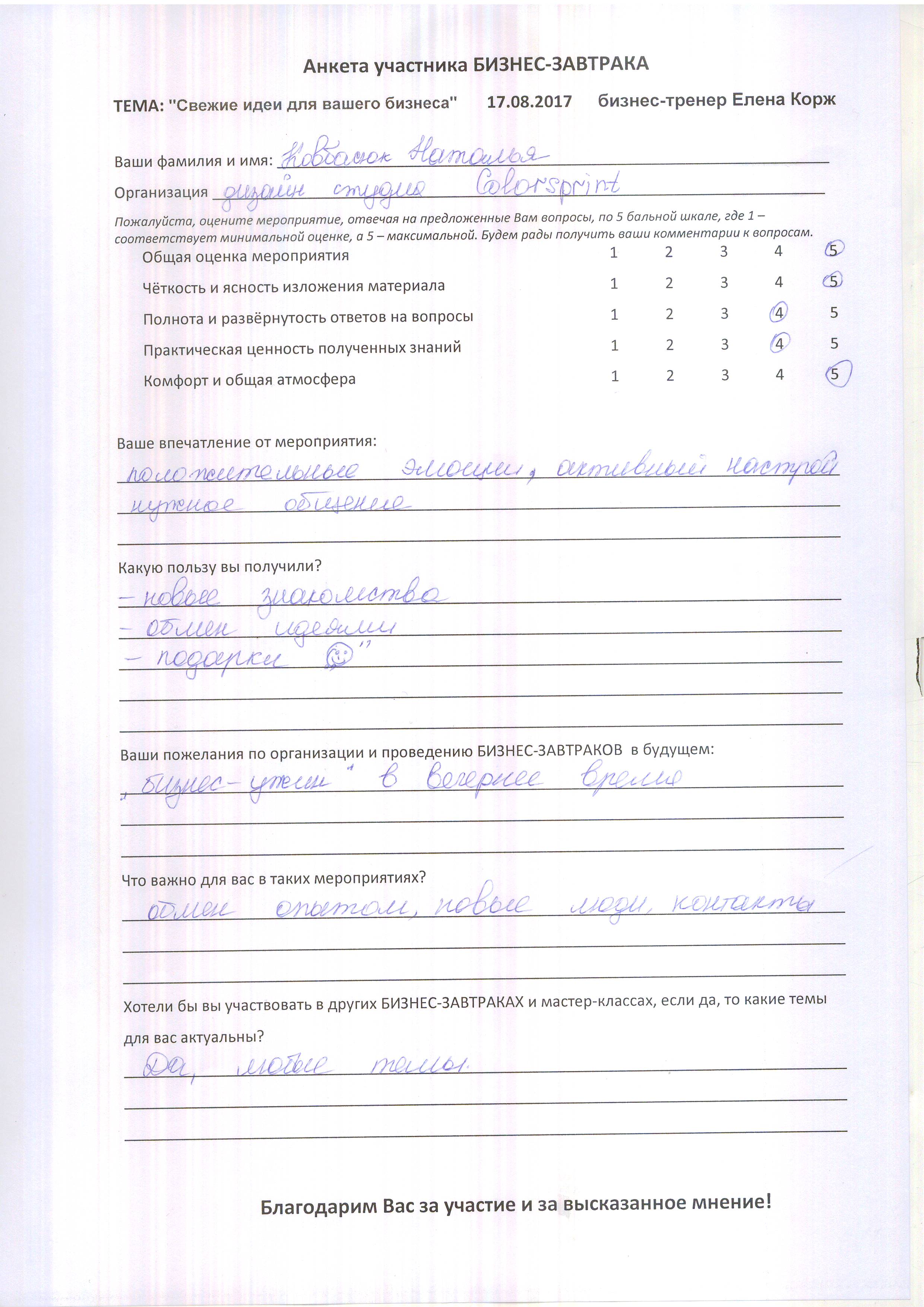 Анкеты-отзывы